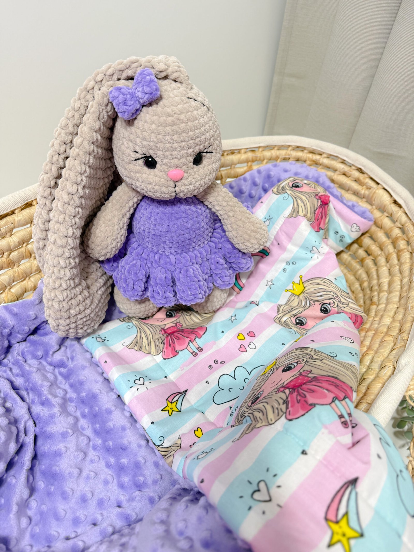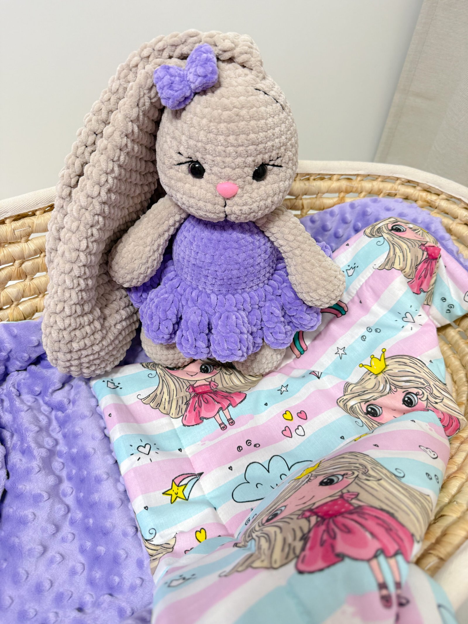 Mielas ir švelnus kiškiukas taps Jūsų mažylio geriausiu draugu. Jis puikiai tiks miegui, žaidimams ir ramiems apsikabinimams.