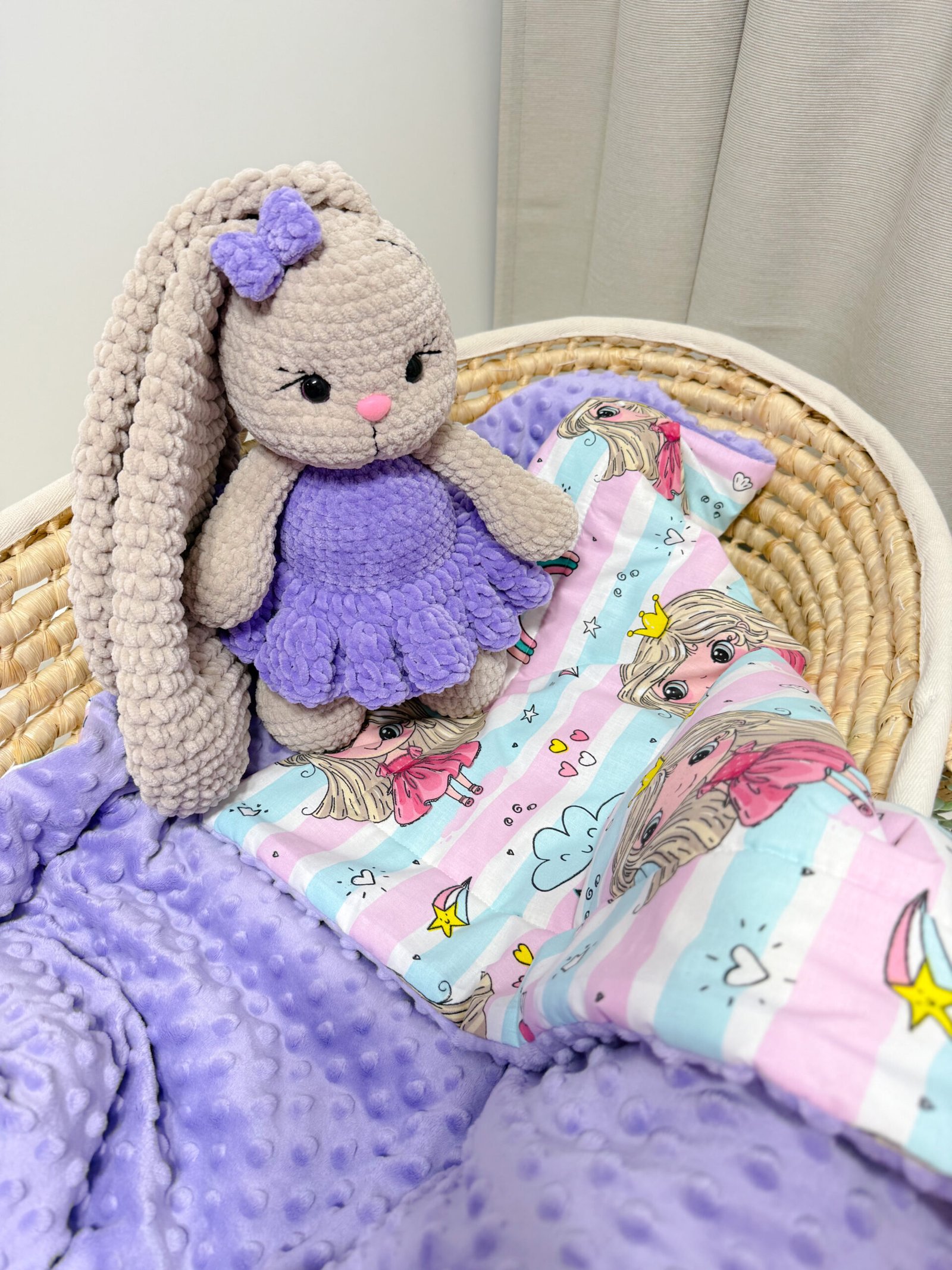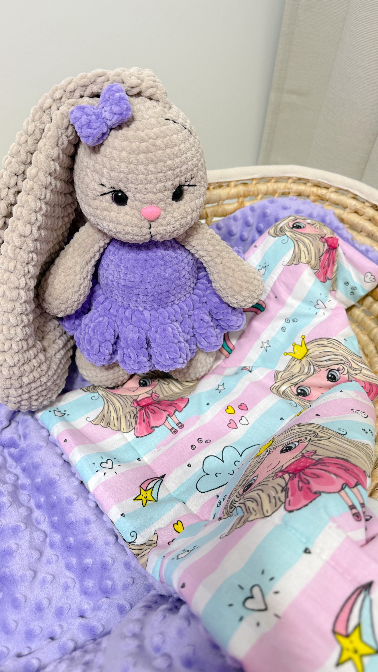 Tai jaukus ir minkštas pledukas, pasiūtas iš sertifikuotos medvilnės bei Minky audinio. Norint dar didesnio švelnumo ir šilumos, viduje gali būti įsiūtas putlus neaustinis medvilninis sluoksnis (85% medvilnė, 15% poliesteris).