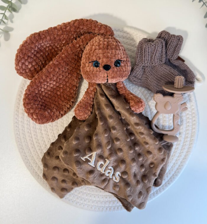 Rankų darbo nertas pliušinis migdukas, taps jūsų mažylio pačiu geriausiu draugu. Minkštas migdukas ir žaislas viename. Padeda užmigti kūdikiui ir tinka naudoti nuo pirmosios gyvenimo dienos.