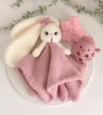 • Kiškučio galvytė pagaminta iš 100% pliušo (YarnArt Dolce), sijonėlis – Teddy audinys.