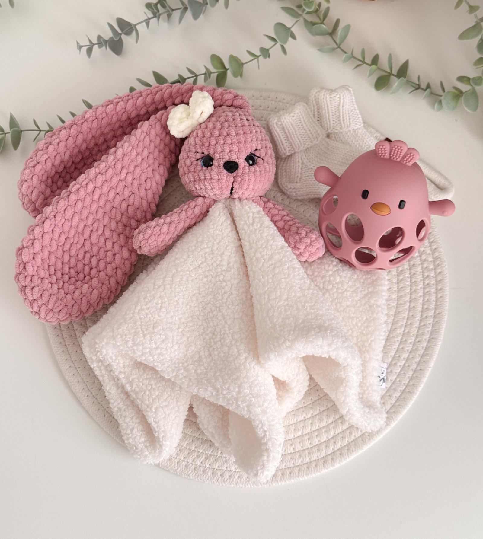 3 dalių kūdikio dovanų rinkinys „Migdukas“ – merino vilnos kojinytės + silikoninis kramtukas
