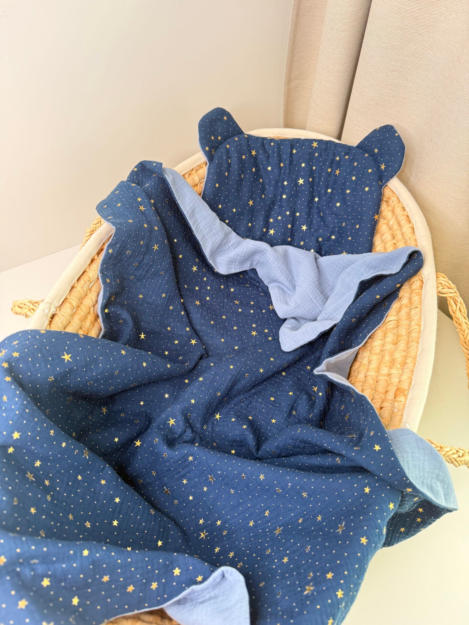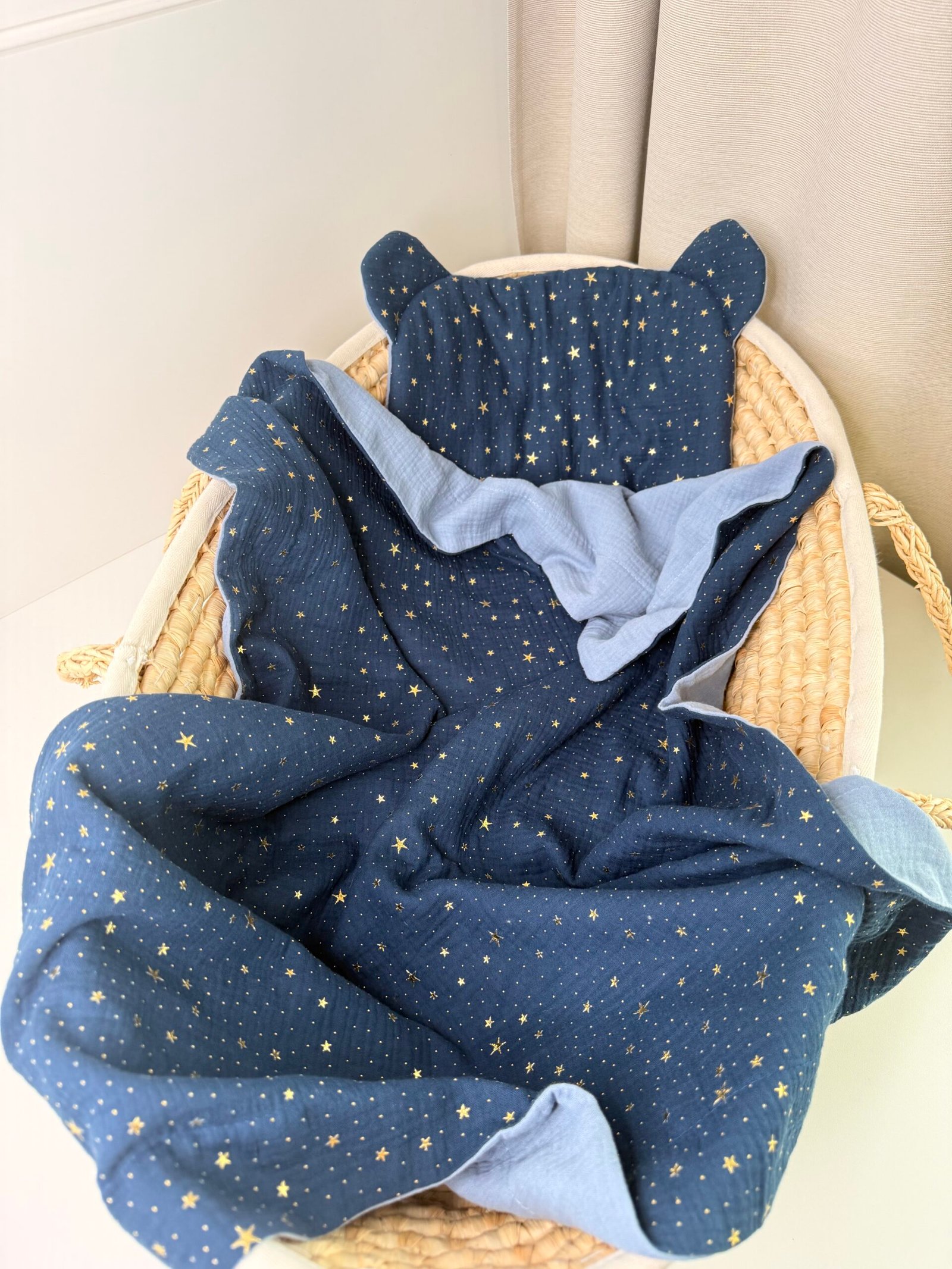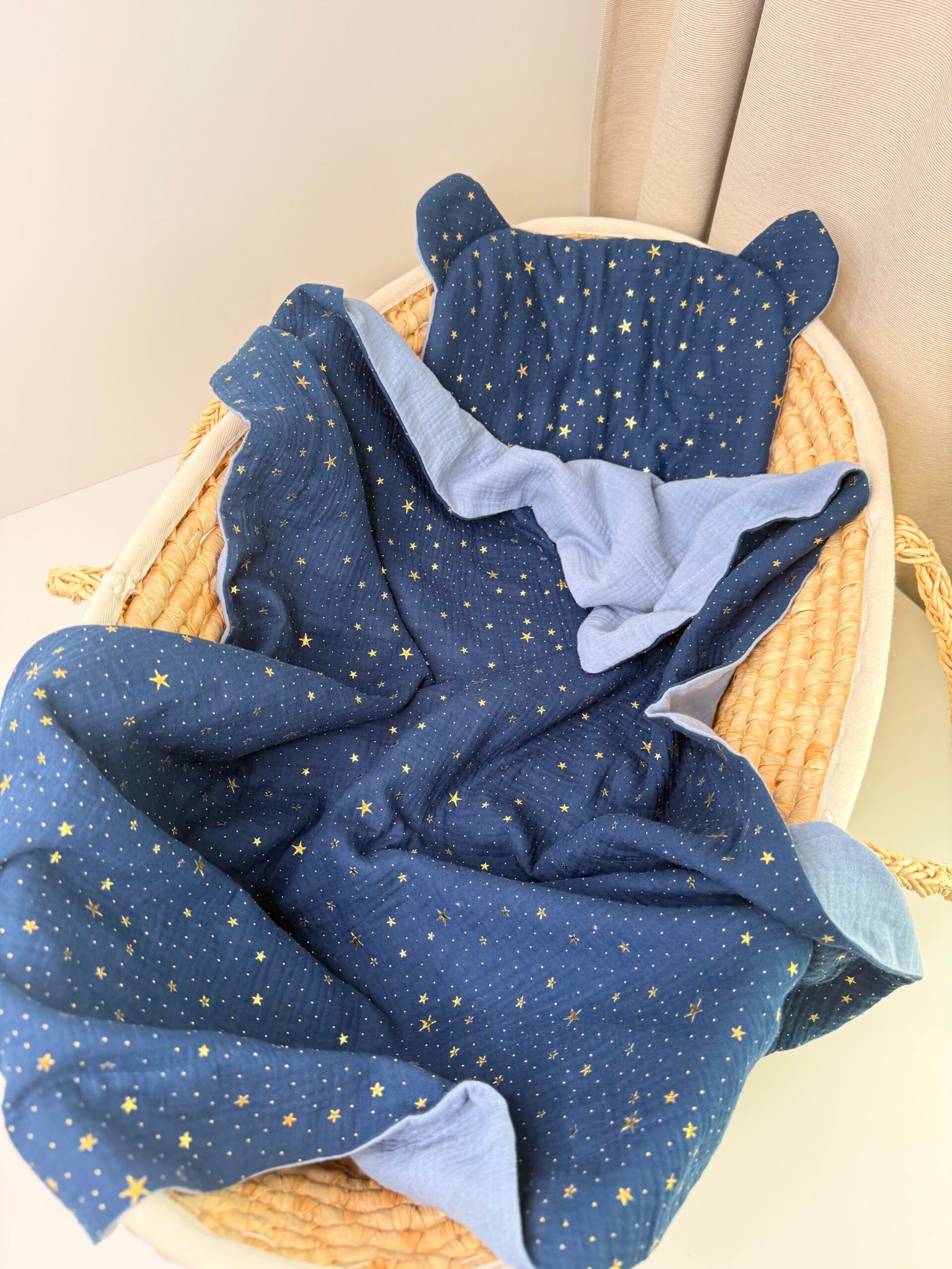 ✔️ Dvipusis pledukas (75×100 cm ±2 cm) – pagamintas iš sertifikuoto muslino audinio. Papildomai galima įsiūti putlų neaustinį medvilninį audinį (85% medvilnė, 15% poliesteris), kad būtų dar šiltesnis ir jaukesnis.