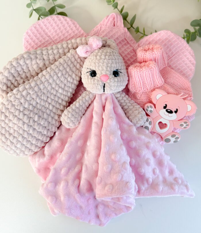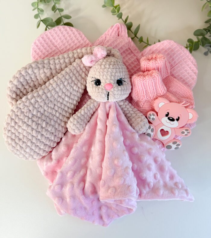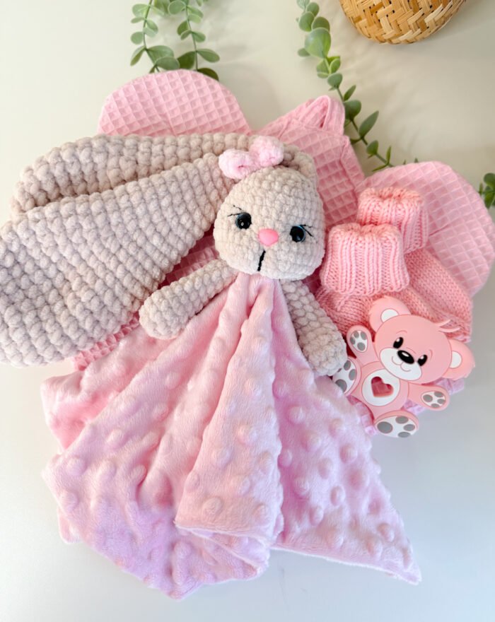 Rankų darbo nertas pliušinis migdukas, taps jūsų mažylio pačiu geriausiu draugu. Minkštas migdukas ir žaislas viename. Padeda užmigti kūdikiui ir tinka naudoti nuo pirmosios gyvenimo dienos.