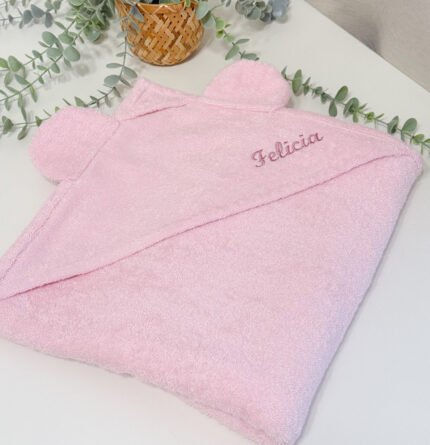 Medvilninis frotte vonios rankšluostis su gobtuvu „Rožinis” 100x100cm