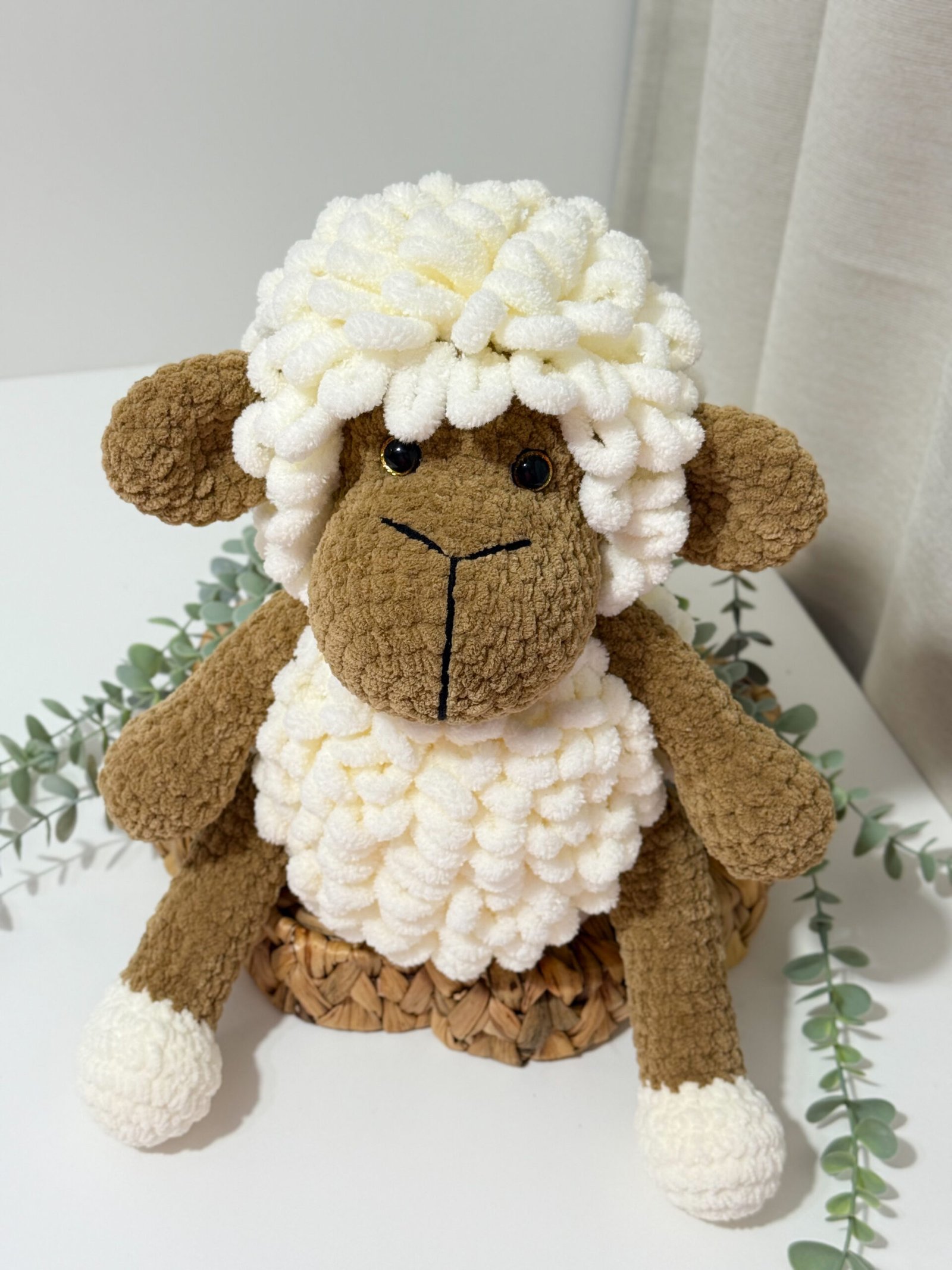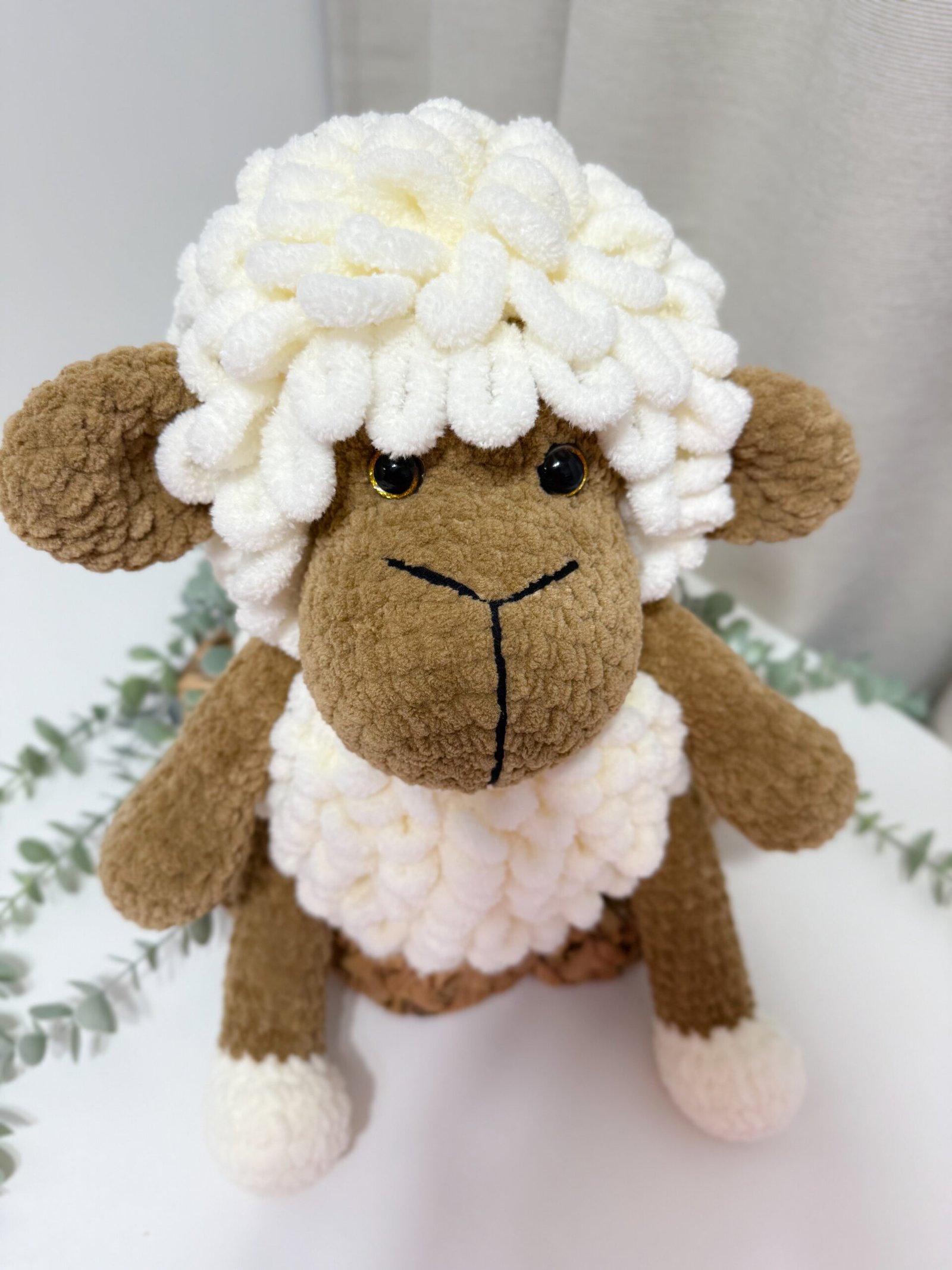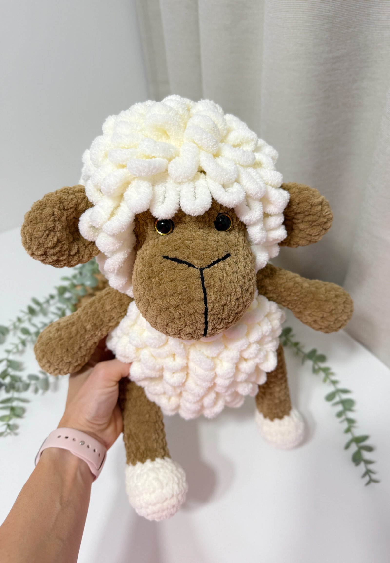 Rankų darbo, mielas ir švelnus aviukas taps ne tik žaislu, bet ir jaukiu mažylio palydovu. Dėl švelnios tekstūros ir malonaus prisilietimo jis ramina, o jo dydis puikiai pritaikytas mažoms vaikų rankytėms.