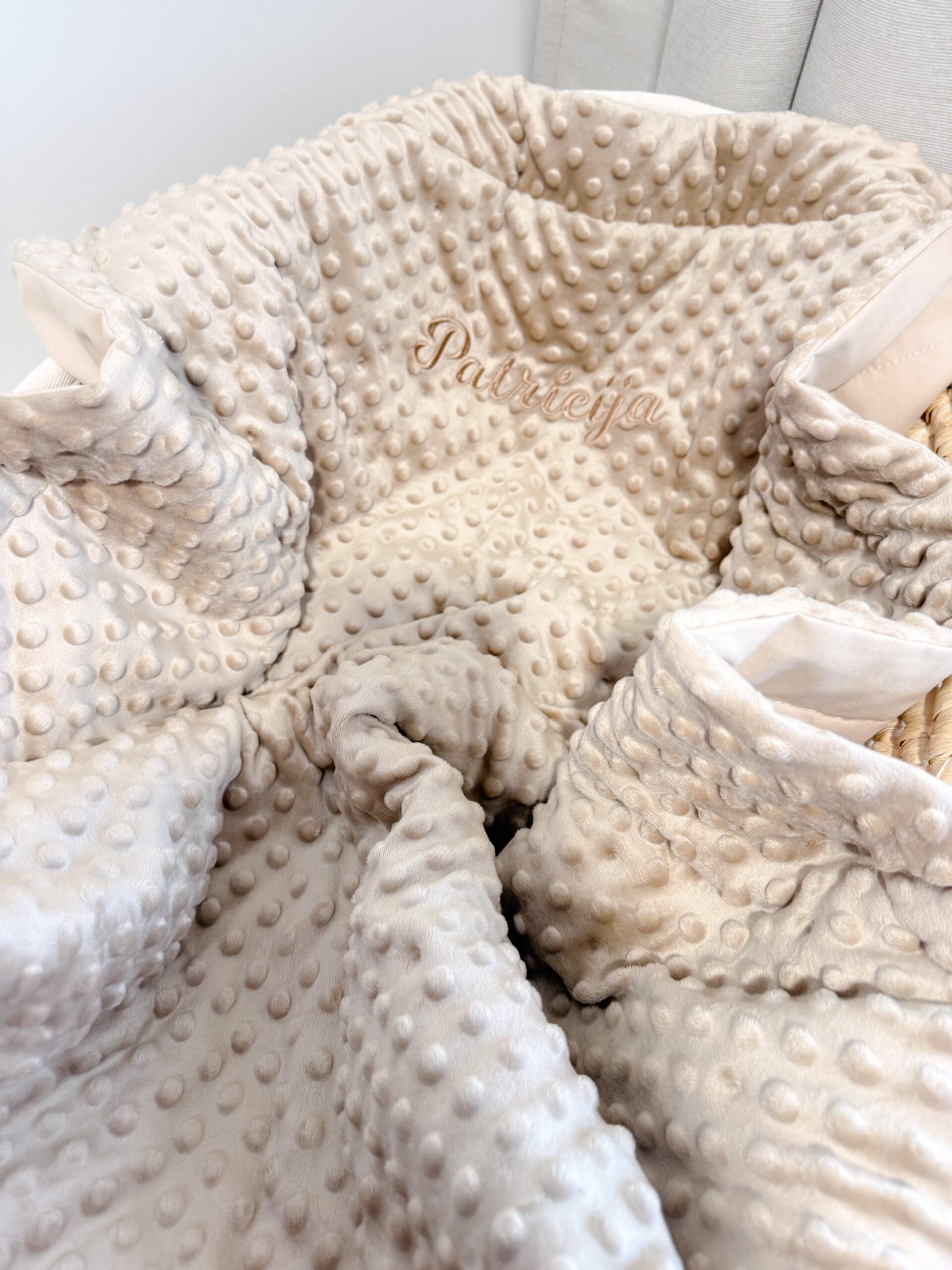 Minky/medvilnės drobelės pledukas skirtas į vežimėlį ar lopšiuką.