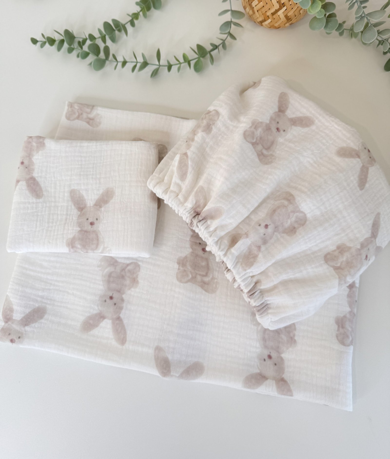 Muslino 3 dalių patalynės komplektas "Kiškutės"