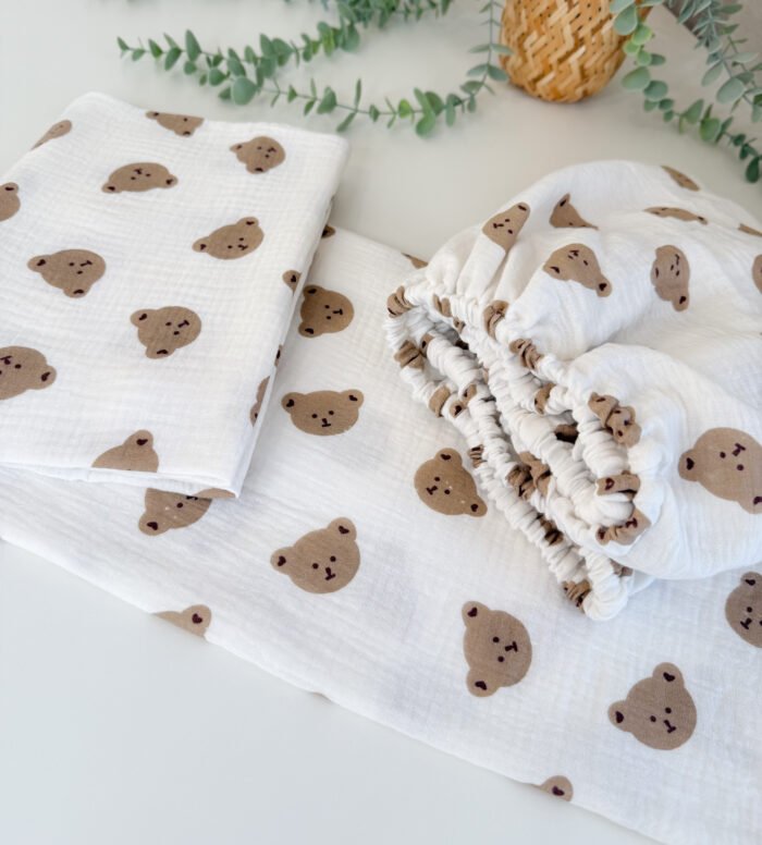 Pradžia Kūdikių ir vaikų miegui Patalynė kūdikiams ir vaikams Muslino 3 dalių patalynės komplektas „Meškiukai”