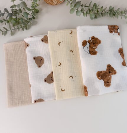 Muslino merliukų rinkinys kūdikiams „Meškiukai” 2vnt.
