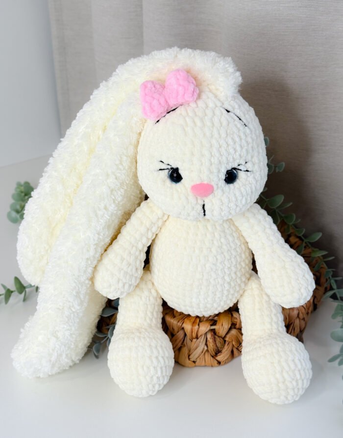 ⭐️Rankų darbo pliušinis žaisliukas – kiškiukas, taps jūsų mažylio pačiu geriausiu draugu.  Kiškučio aukštis ~30-32cm.