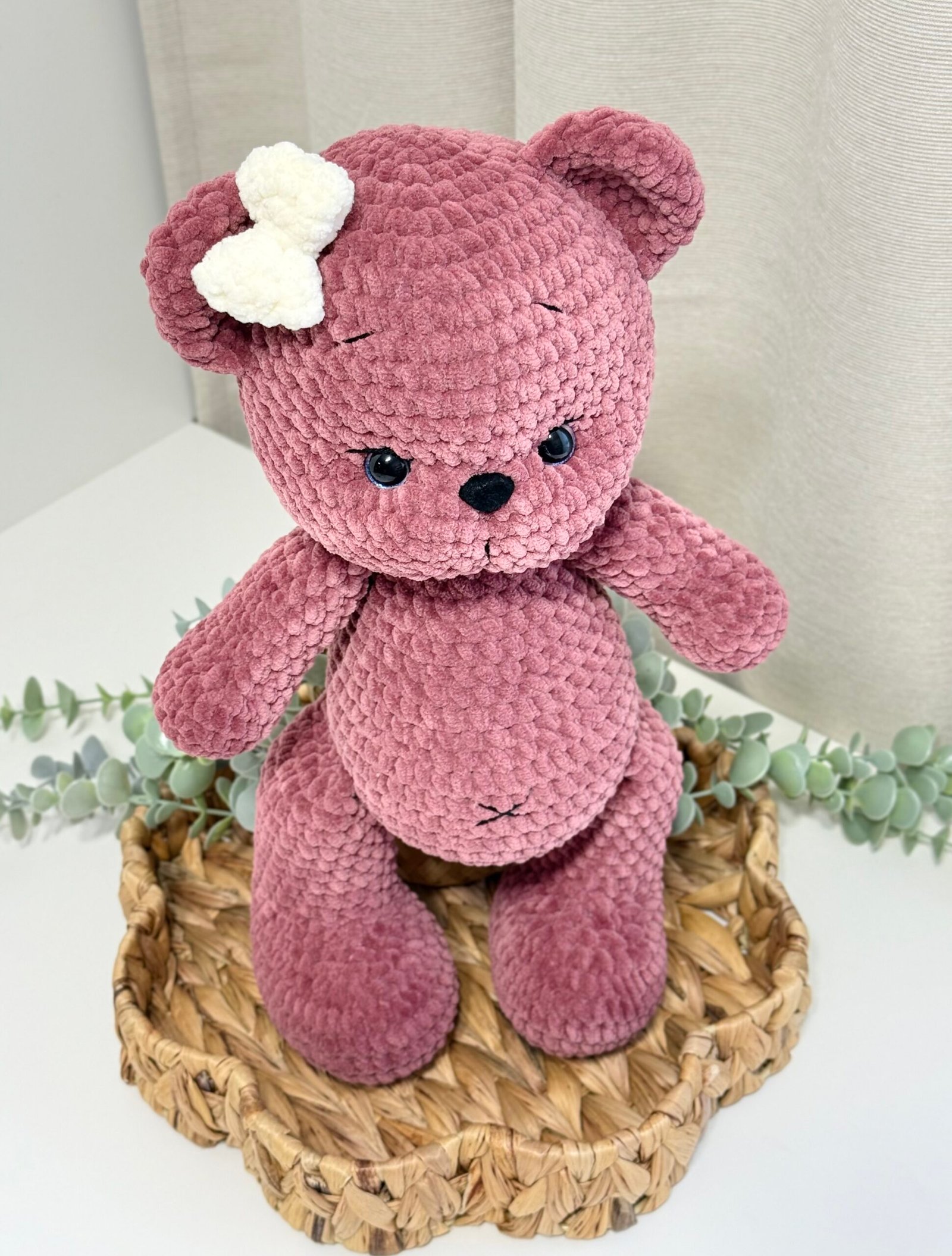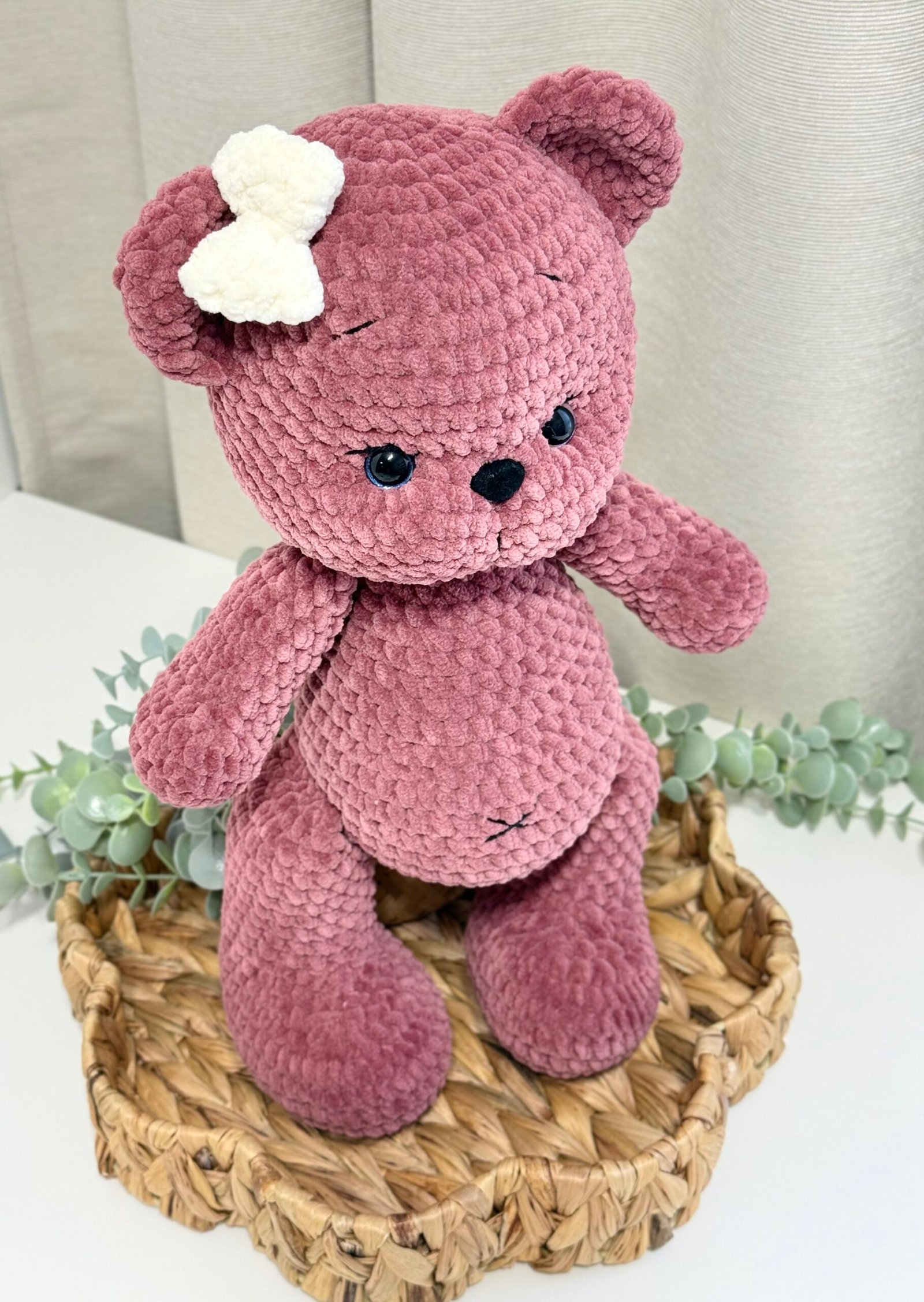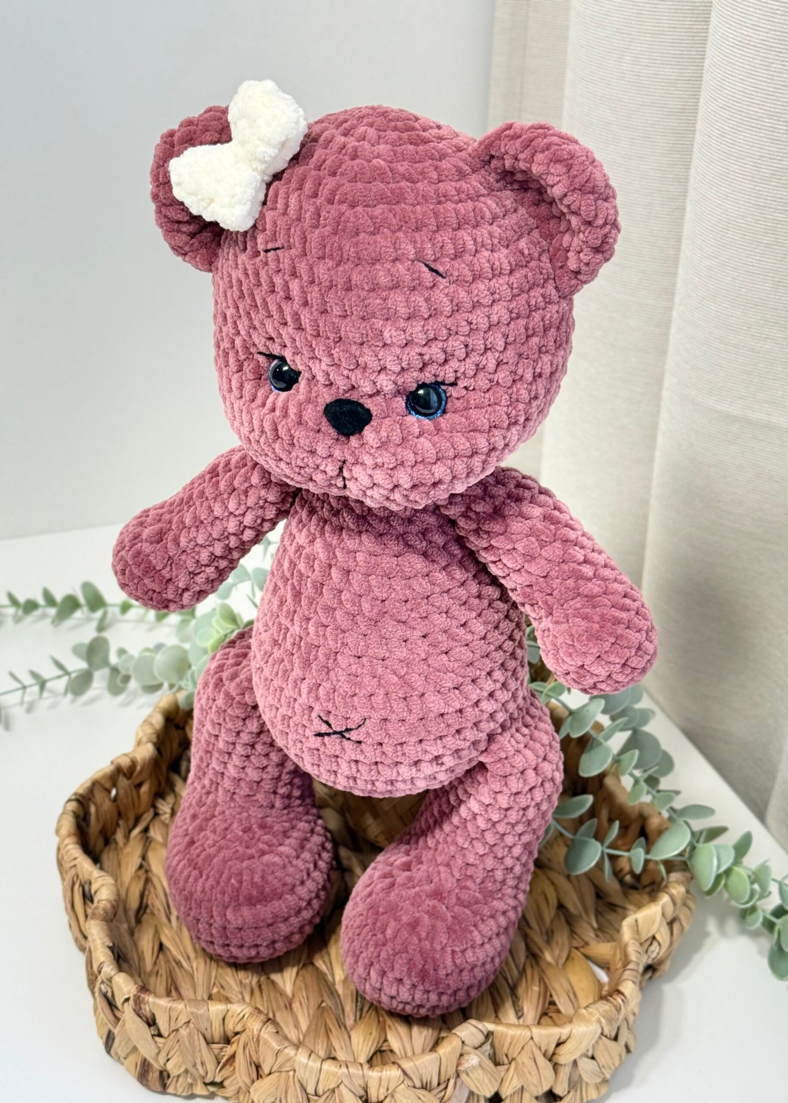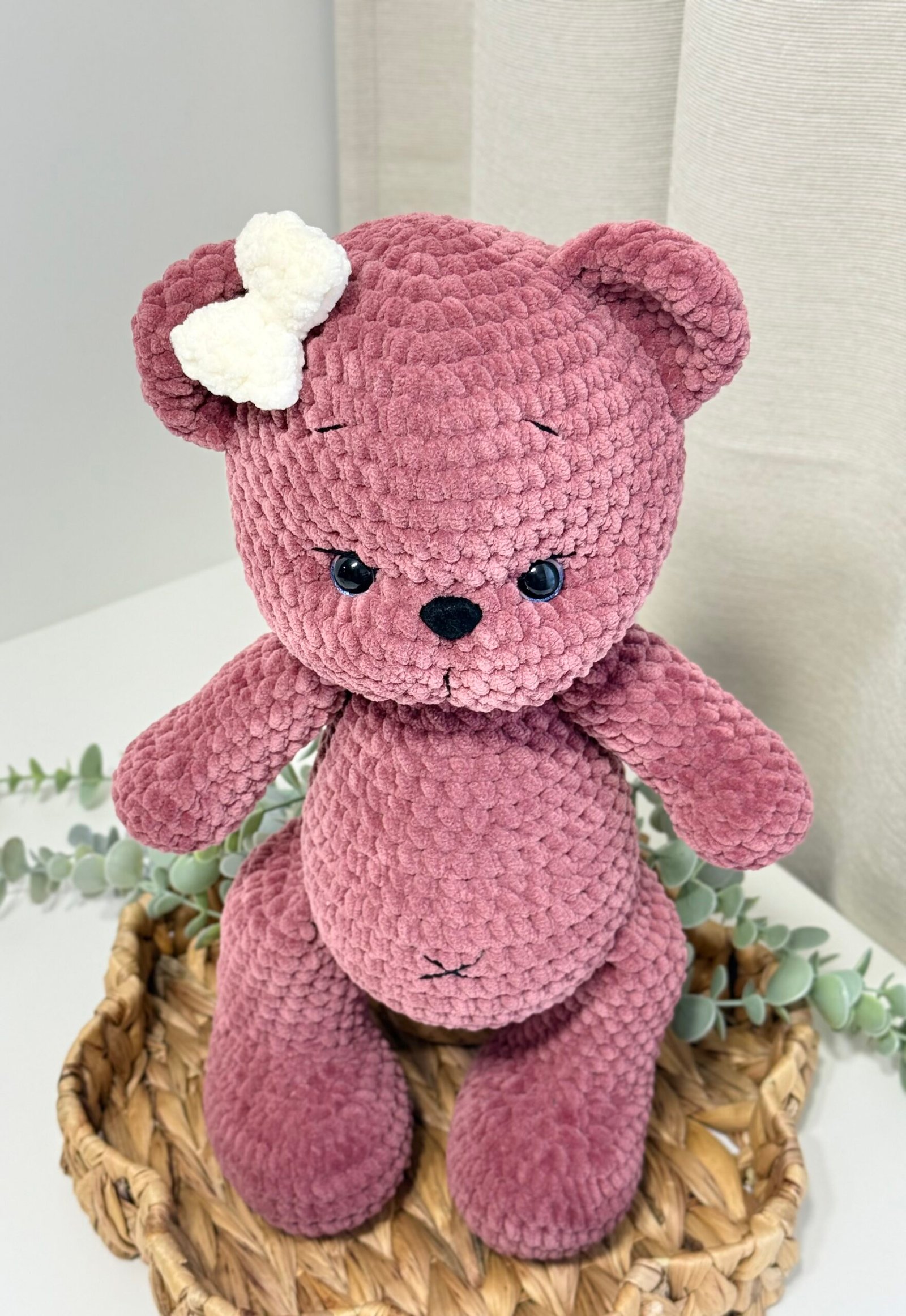 ⭐️Rankų darbo pliušinis žaisliukas – meškiukas, taps jūsų mažylio pačiu geriausiu draugu. Meškučio aukštis su ausimis 40cm.