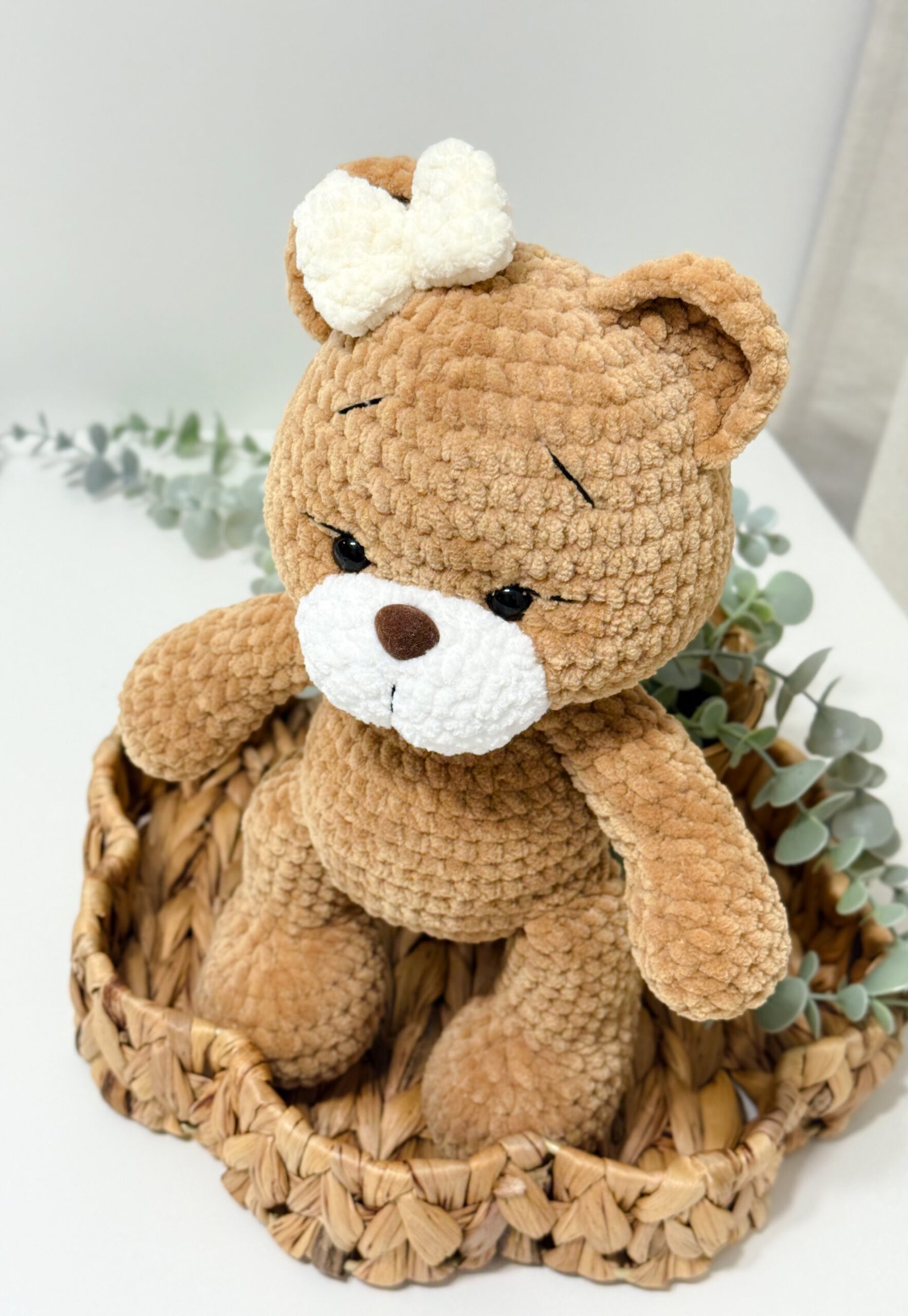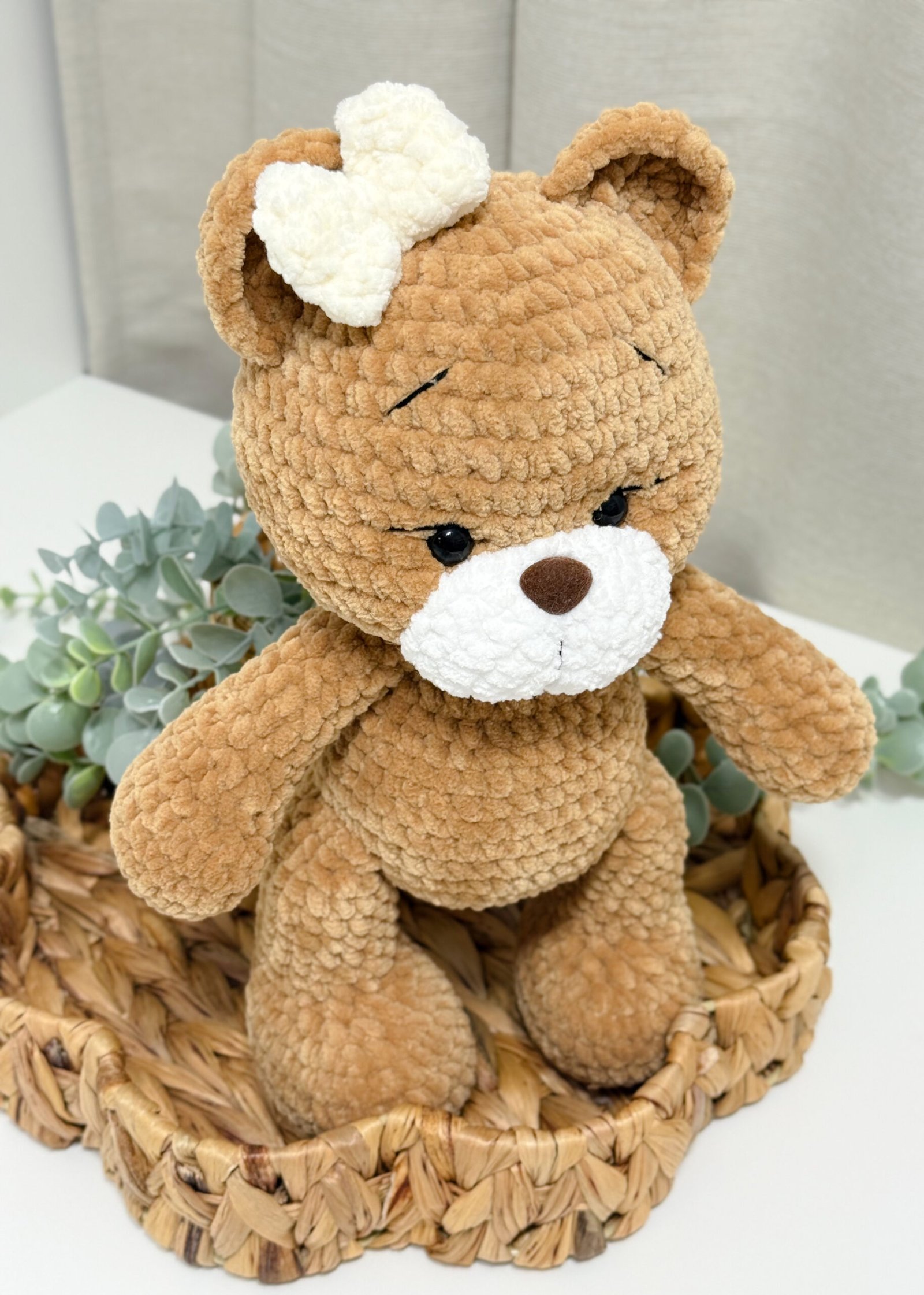 ⭐️Rankų darbo pliušinis žaisliukas – meškiukas, taps jūsų mažylio pačiu geriausiu draugu.  Meškučio aukštis su ausimis 28-30cm.