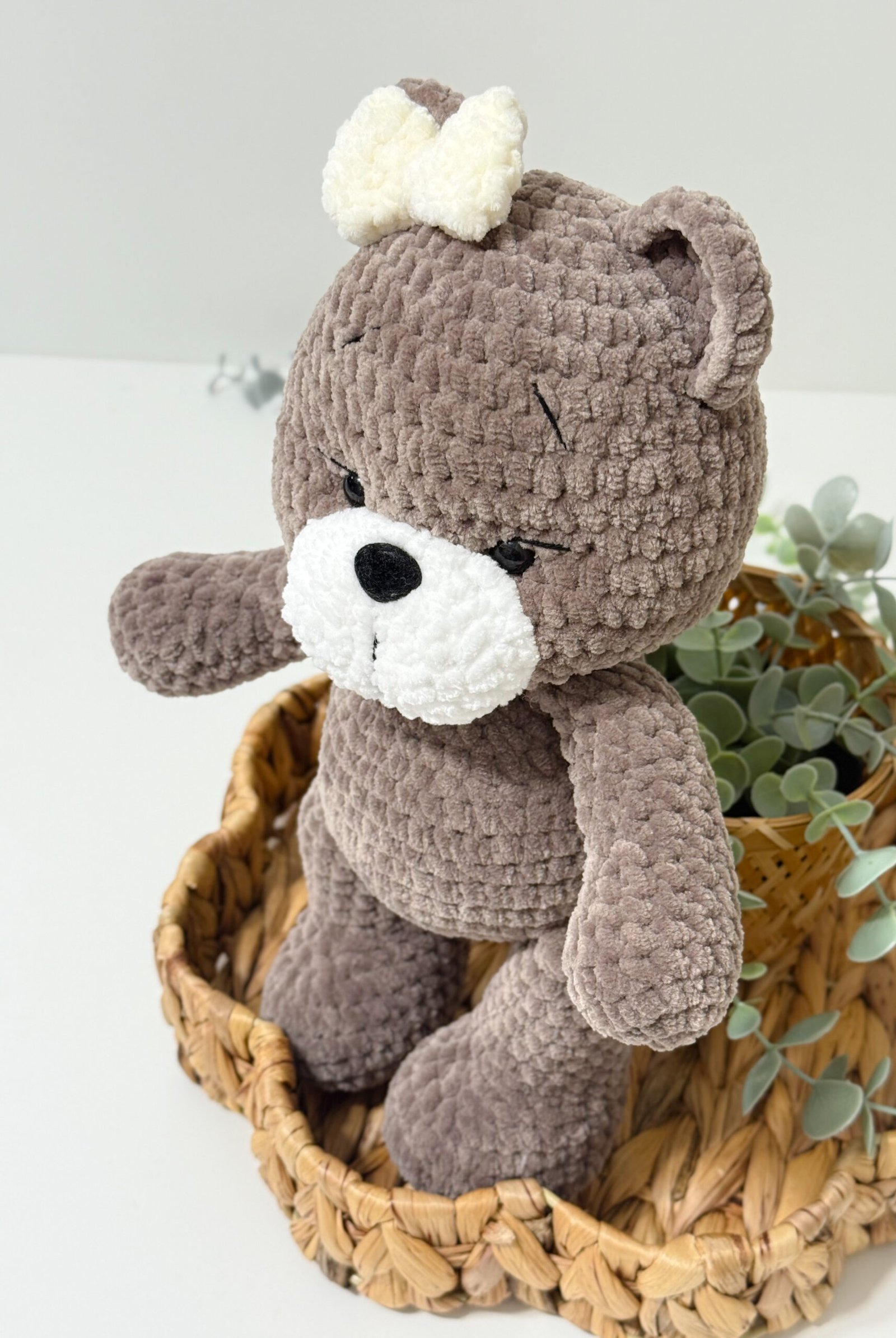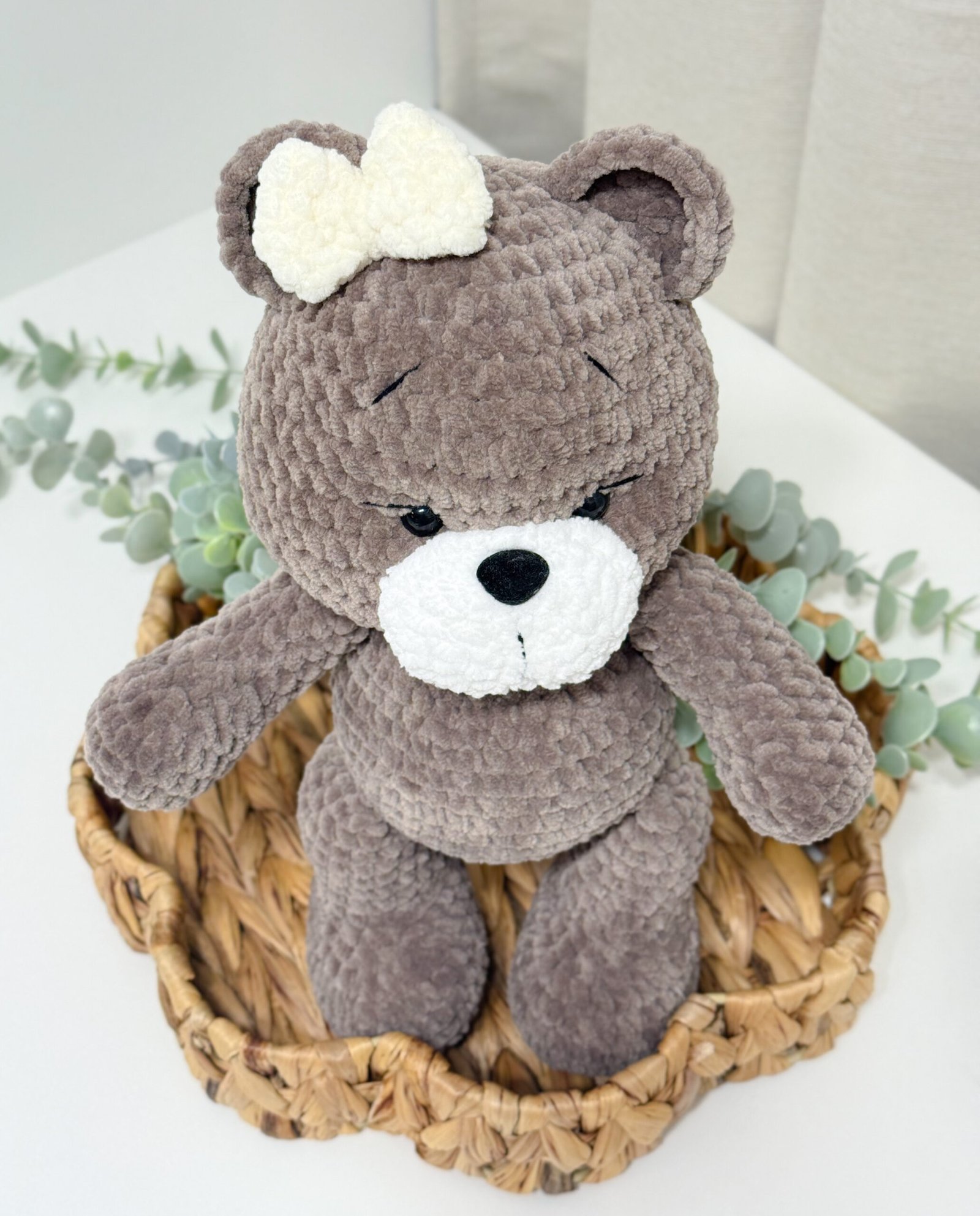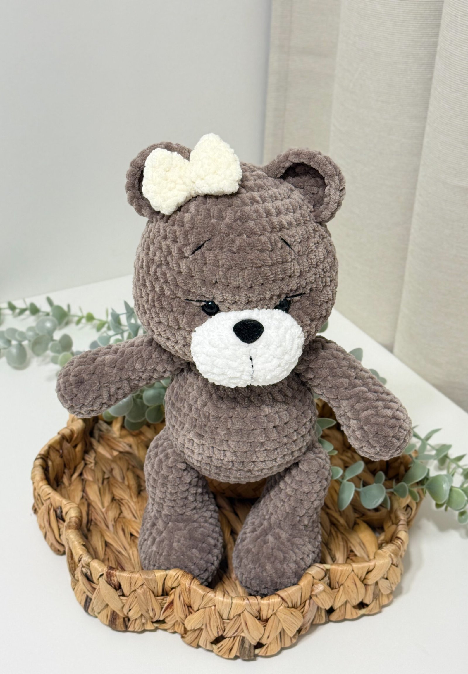 ⭐️Rankų darbo pliušinis žaisliukas – meškiukas, taps jūsų mažylio pačiu geriausiu draugu.  Meškučio aukštis su ausimis 28-30cm.