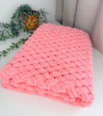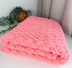 Rankomis megztas „PUFFY” pledukas "Persikinės" spalvos