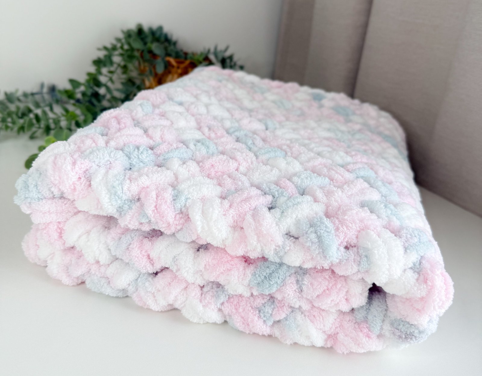 Pledukas megztas rankomis iš itin minkštų ir švelnių Alize Puffy siūlų.