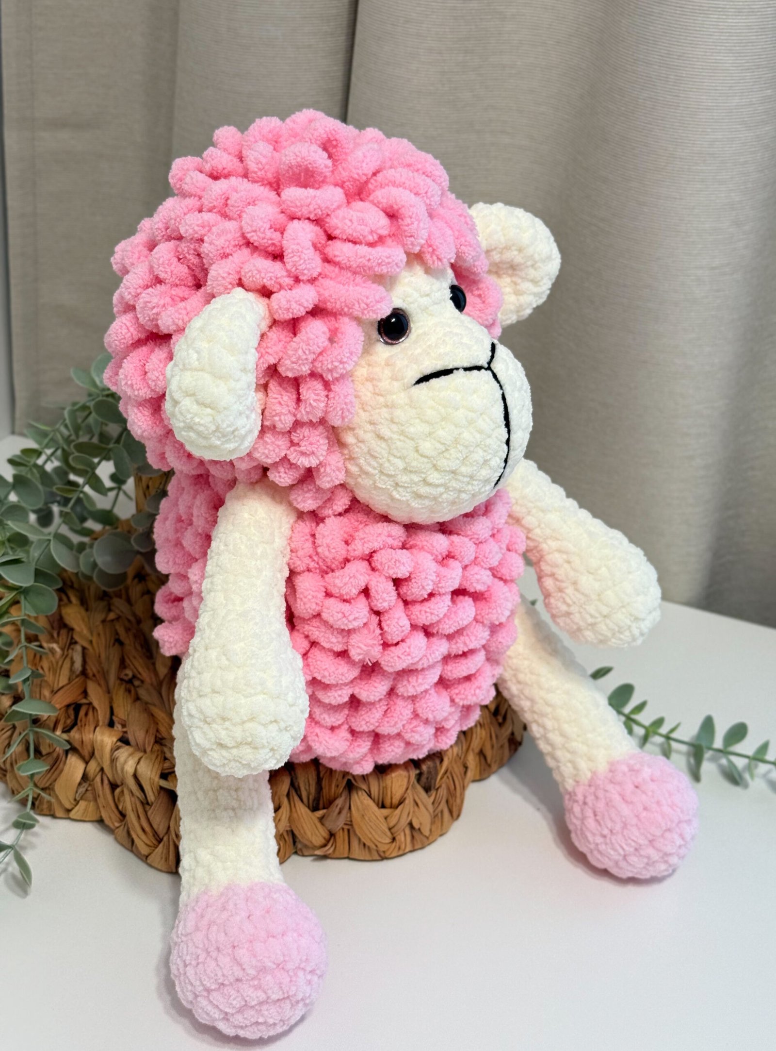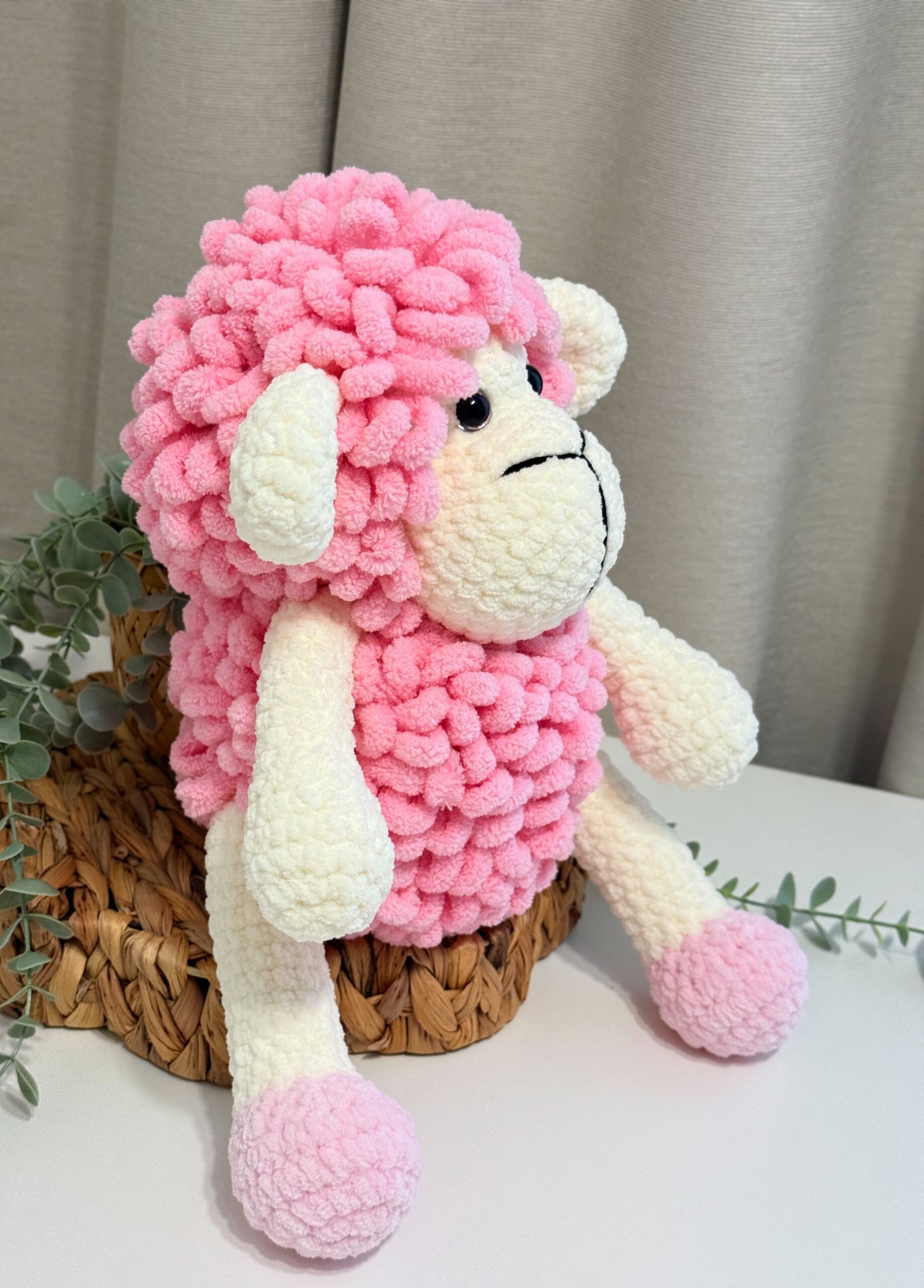 Rankų darbo, mielas ir švelnus aviukas taps ne tik žaislu, bet ir jaukiu mažylio palydovu. Dėl švelnios tekstūros ir malonaus prisilietimo jis ramina, o jo dydis puikiai pritaikytas mažoms vaikų rankytėms.