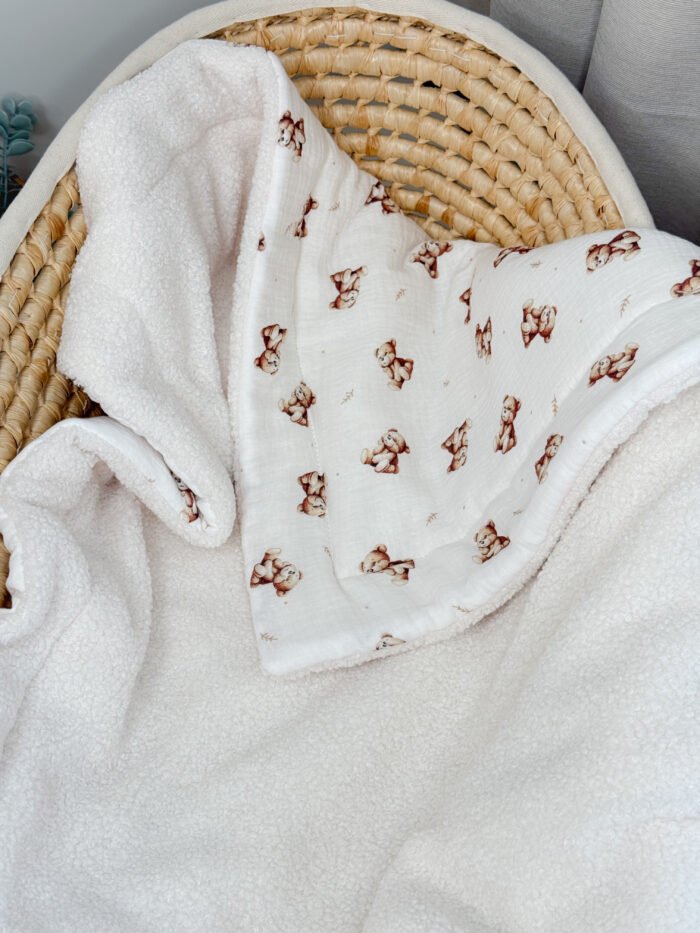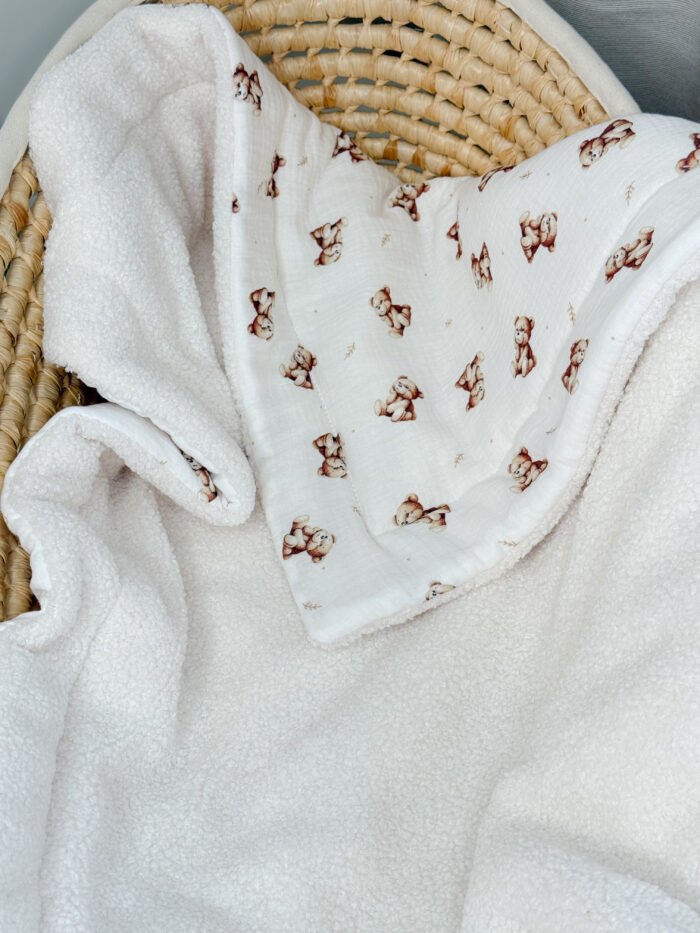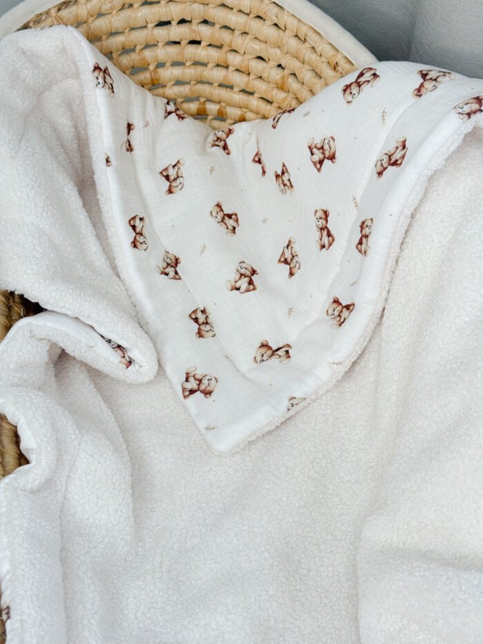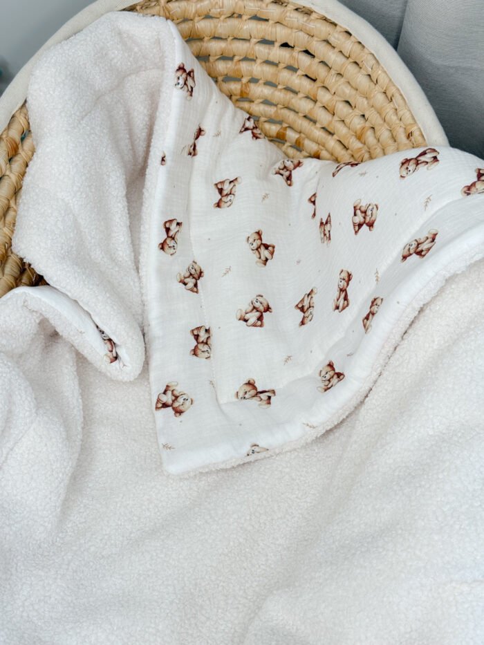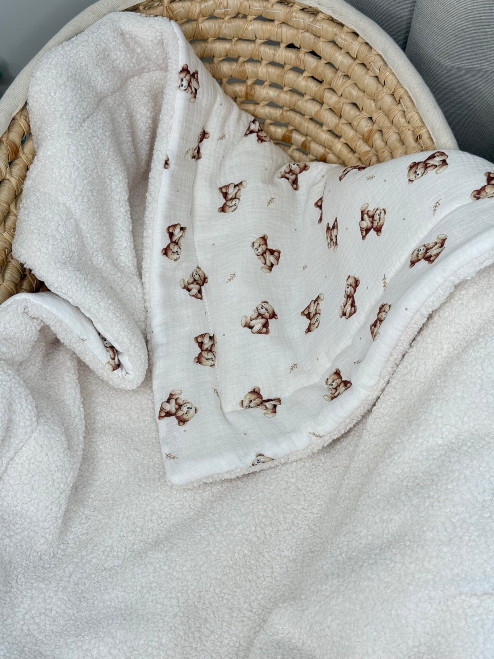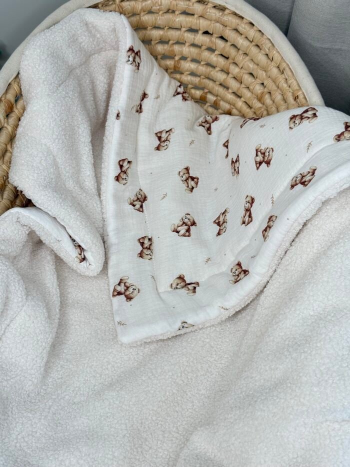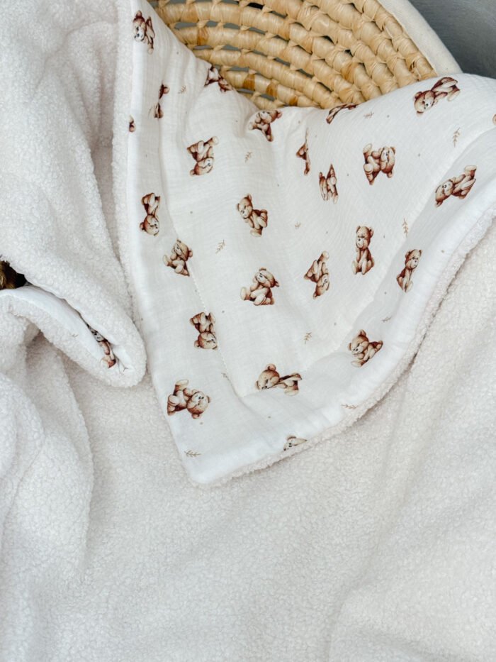 🌿🧸 Dvipusis pledas (Teddy + Muslinas)