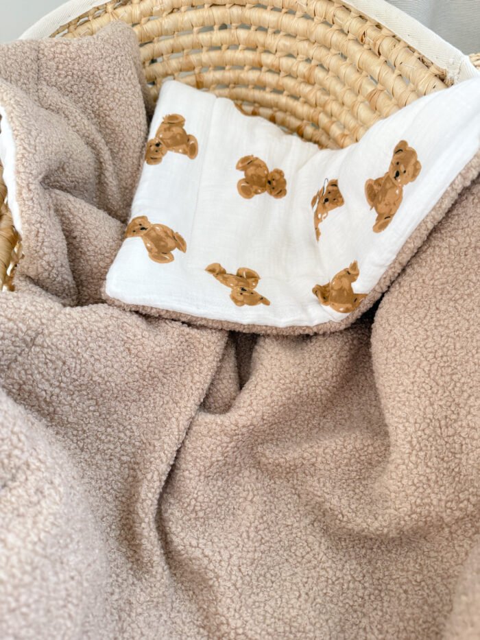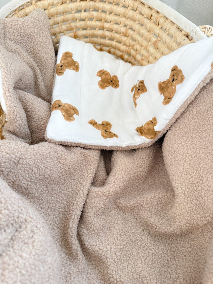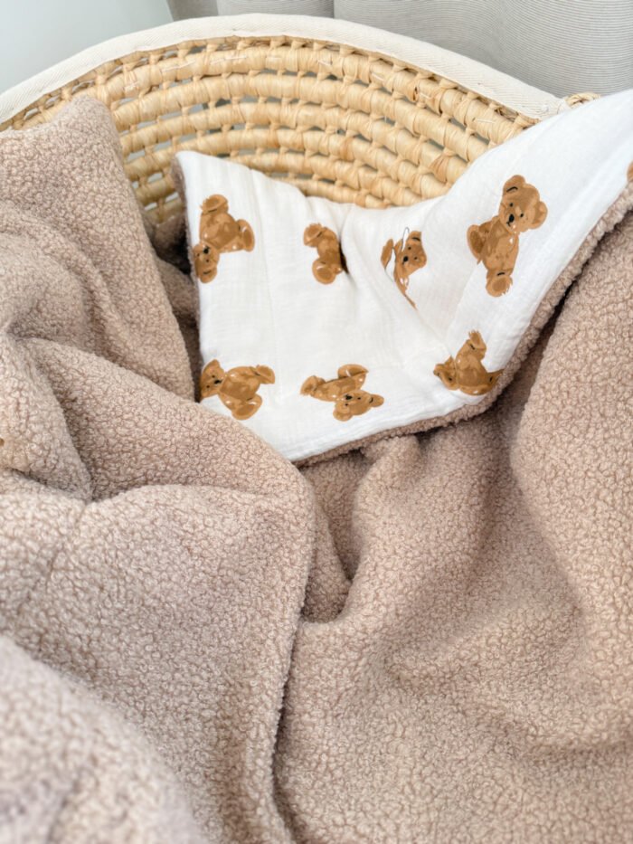 🌿🧸 Dvipusis pledas (Teddy + Muslinas)