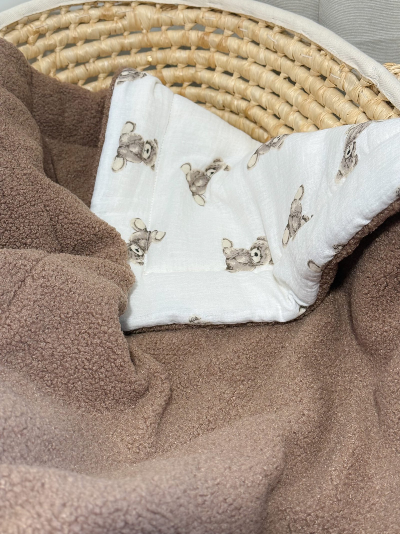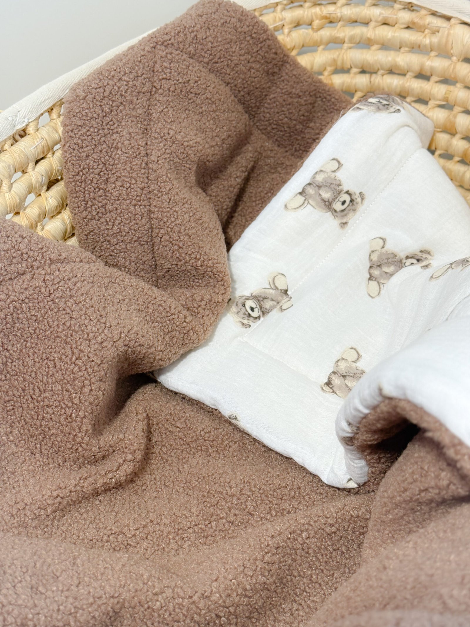 🌿🧸 Dvipusis pledas (Teddy + Muslinas)